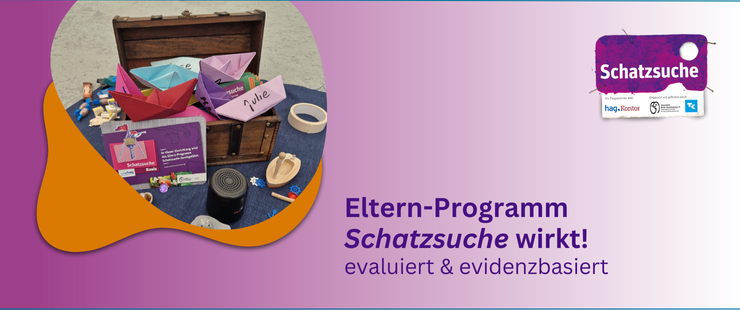 Das Eltern-Programm „Schatzsuche“ ist evidenzbasiert. Es wurde von der Hamburgischen Arbeitsgemeinschaft für Gesundheitsförderung (HAG) entwickelt und durch das Universitätsklinikum Hamburg-Eppendorf sowie die Berlin School of Public Health wissenschaftlich begleitet und evaluiert.